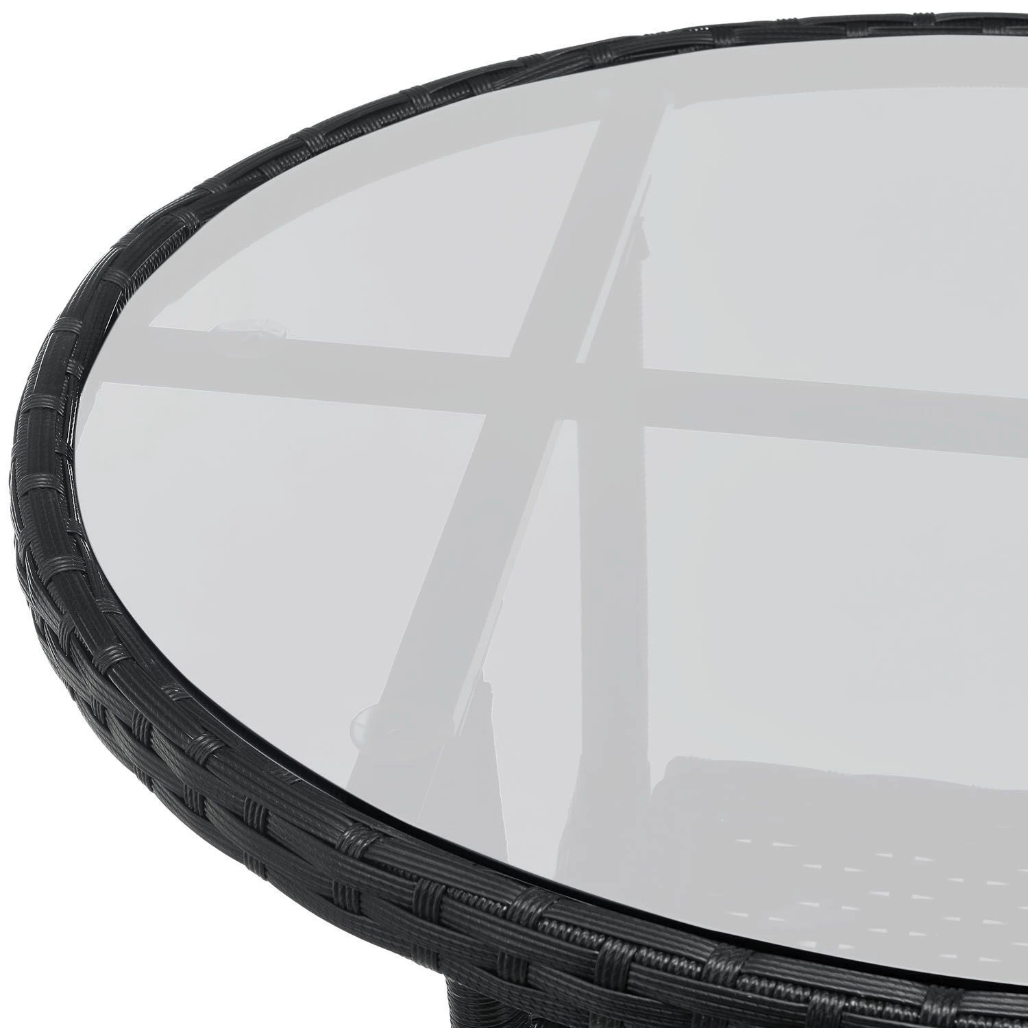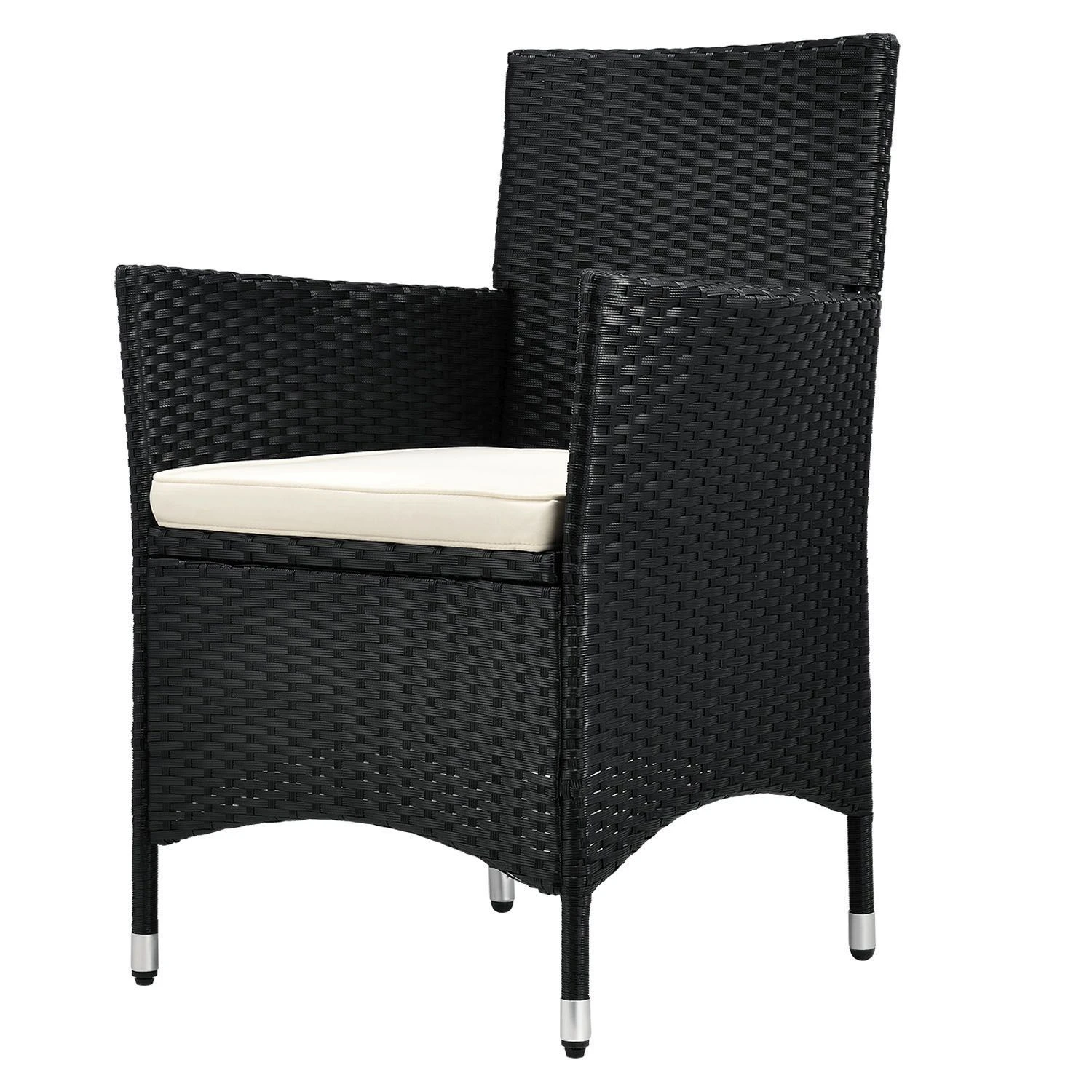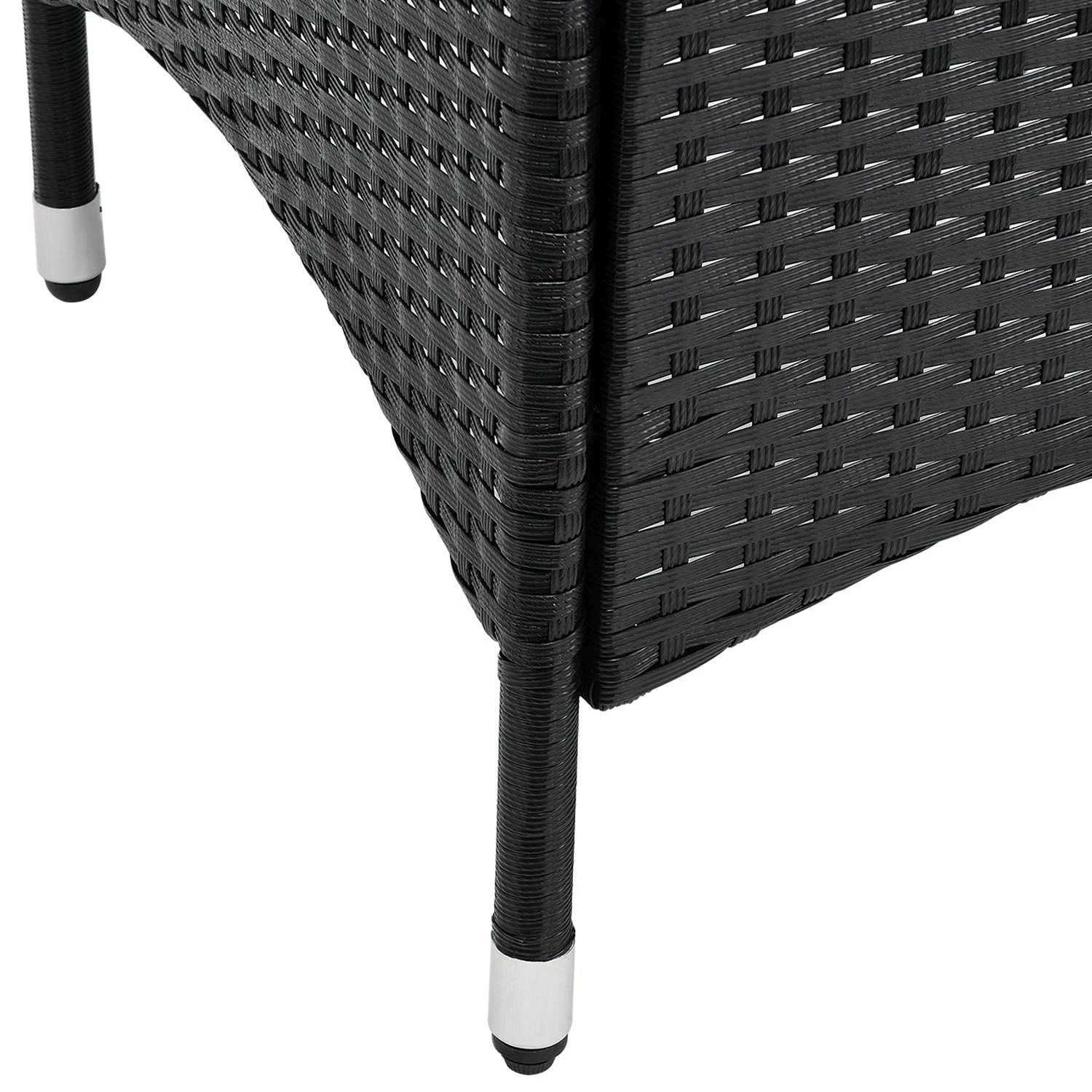 Met het materiaal polyrattan ben je helemaal trendy. Het hoogwaardige gevlochten materiaal wordt steeds populairder en overtuigt met tal van positieve eigenschappen. Weer en wind trotserend, de synthetische vezel is ideaal voor gebruik op uw terras of in de tuin. De unieke rotan look in zwart met cream pads geeft je nieuwe loungemeubel een moderne charme. Geniet van warme zomeravonden in ontspannen samenzijn met een glas rode wijn op uw balkon.