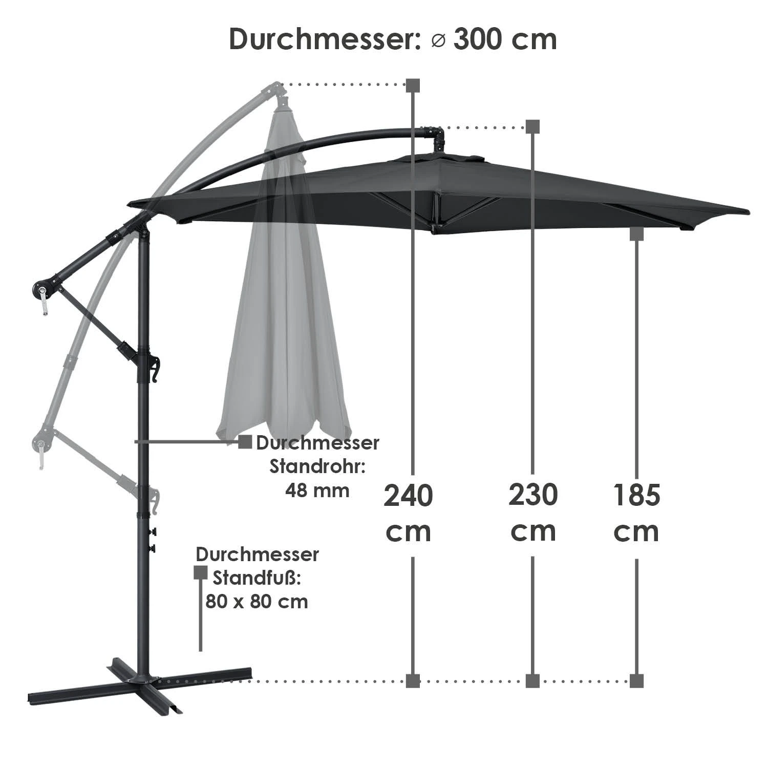 In tegenstelling tot conventionele parasols wordt de mast aan de zijkant van de parasol bevestigd. Hij neemt geen onnodige ruimte in onder de parasol, dus je kunt er gemakkelijk je tuinmeubelen onder kwijt.