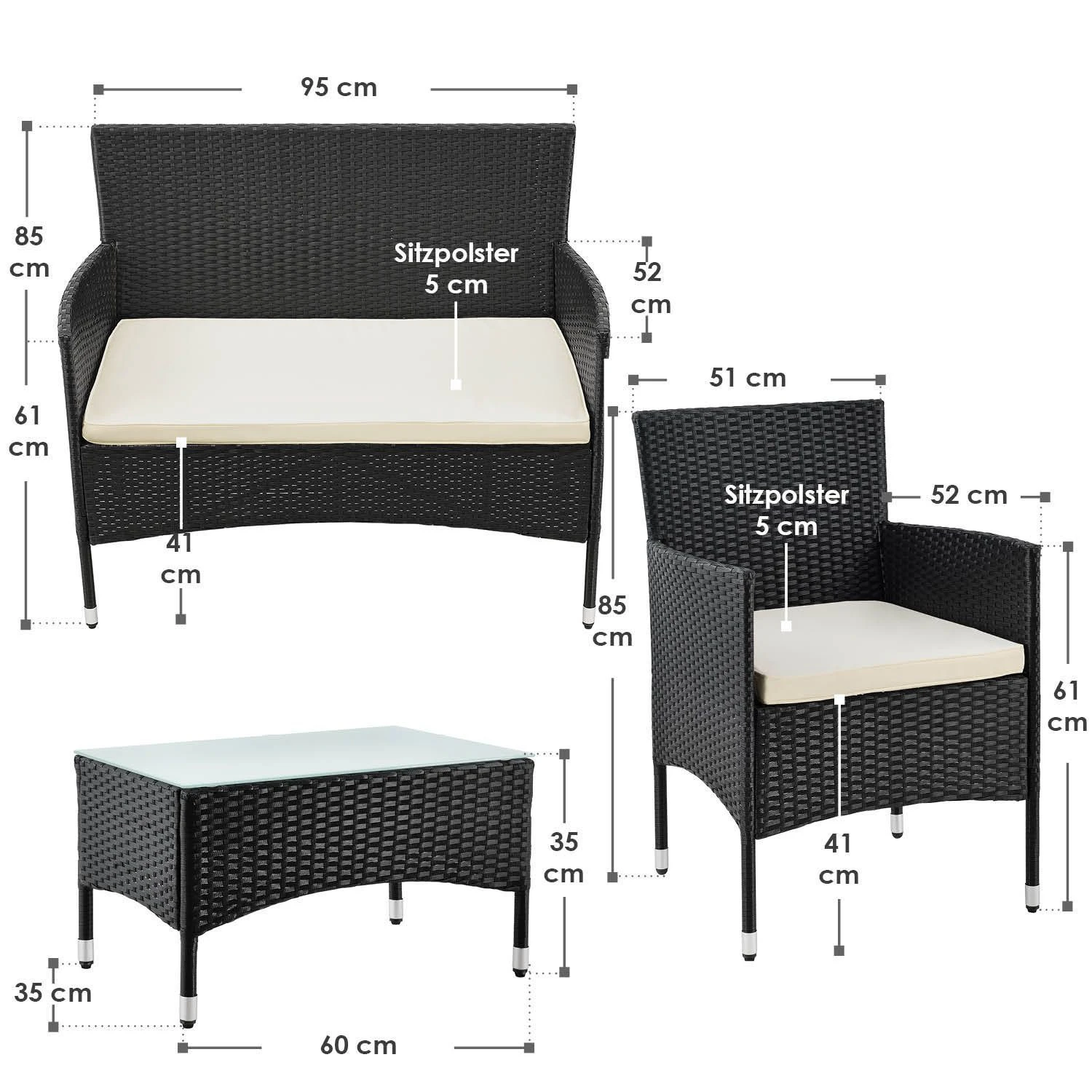 Afmetingen tuinstoelen: 51 × 52 × 85 cm