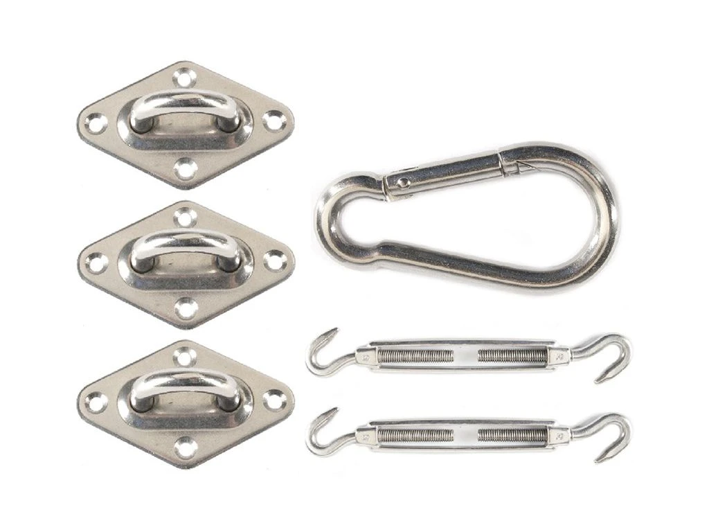 Op een warme dag is het heerlijk om even de schaduw op te kunnen zoeken in uw tuin. Een schaduwdoek van Livin’outdoor komt daarbij goed van pas! U monteert uw schaduwdoek gemakkelijk met deze bijbehorende bevestigingsmaterialen. De bevestigingsset bestaat uit één karabijnhaak, twee spanners en drie platen met oog. Voordat u het schaduwdoek monteert, is het belangrijk om eerst te bepalen waar het doek precies terecht moet komen. Vervolgens monteert u de platen met oog op de juiste plek op de muur of op een paal. Gebruikmakend van de karabijnhaak en de spanners kunt u het doek daarna aan de ogen bevestigen. Dankzij deze beproefde bevestigingsmethode zit het doek stevig vast, zodat u niet bang hoeft te zijn dat het wegwaait.
