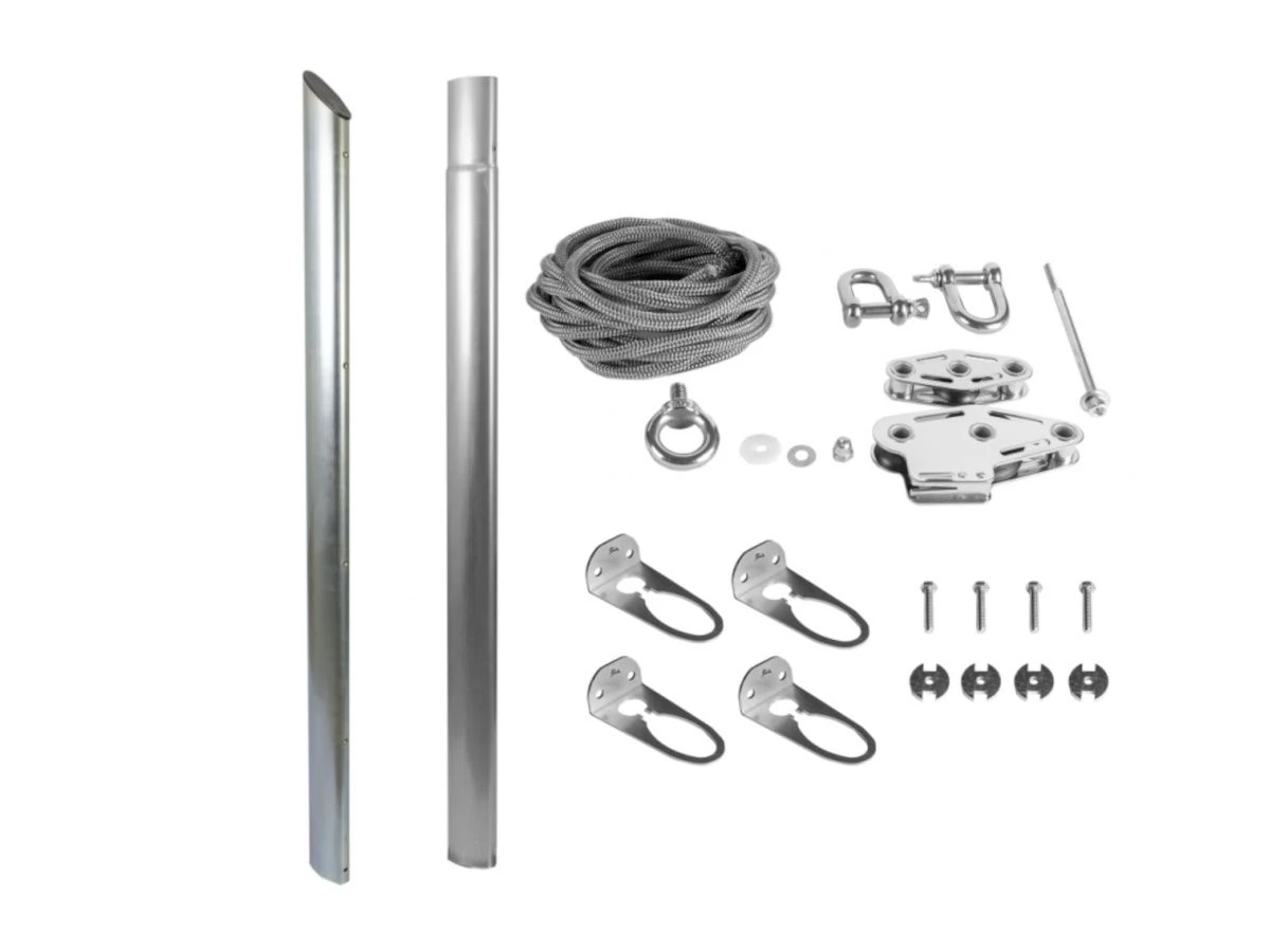 Door deze flexibiliteit van concurrerende palen kan het zeil geen goede spanningen bereiken, aangezien het anker aan de bovenkant van het zeil in roestvrij staal zal ‘ontmoeten’, waardoor minder weerstand tegen spanning en mogelijke vorming van centrale waterpoelen.