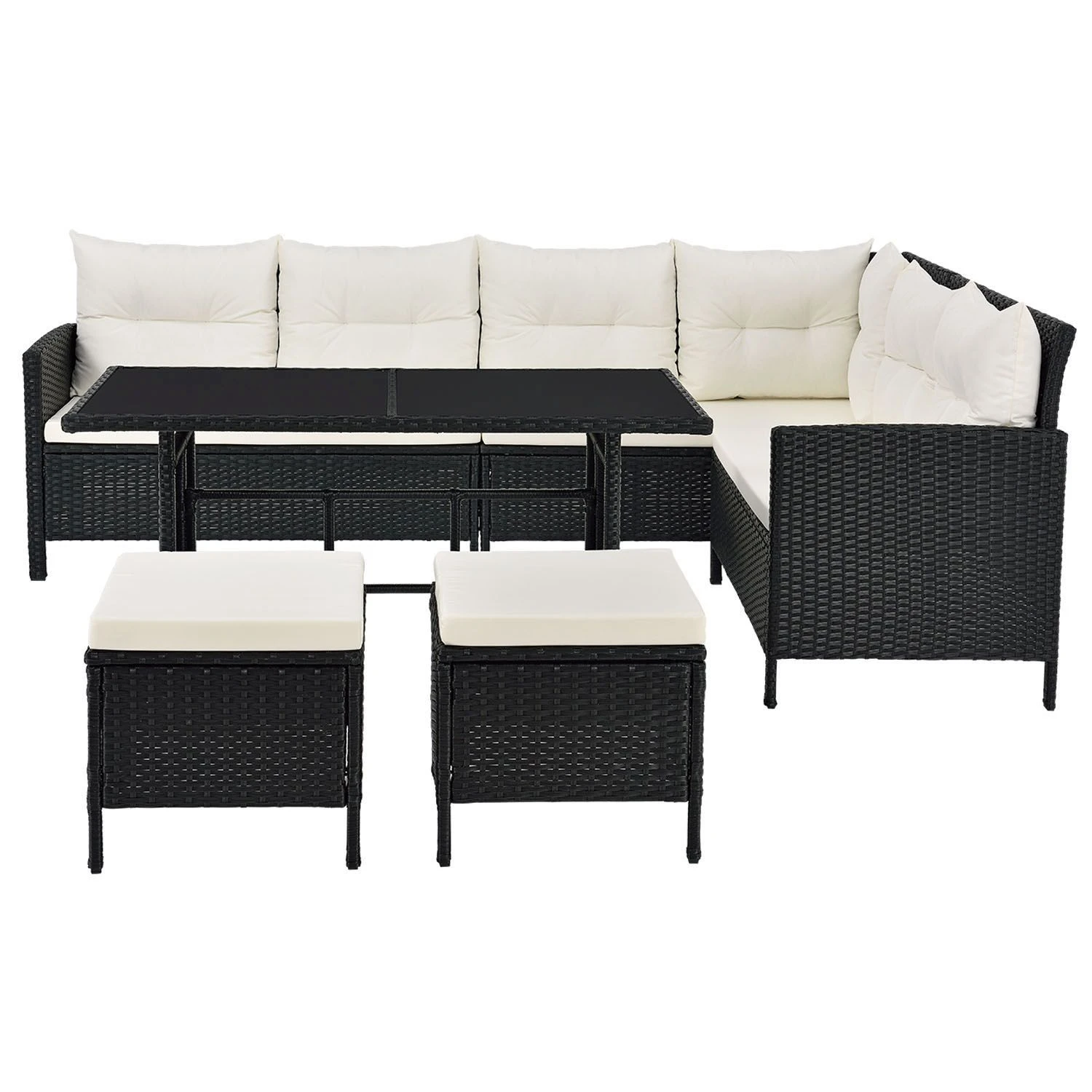 Met de Manacor polyrattan loungeset tover je je tuin, terras of balkon om tot een stijlvolle plek om te ontspannen en je goed te voelen. De grote tuinlounge met een bank, 2 krukken en een tafel is geschikt voor maximaal 7 personen. Zachte zit- en rugkussens zorgen voor een comfortabele zitervaring. De grote eettafel is beschikbaar voor diners of bordspellen. Gezellige avonden met familie, vrienden of buren worden een belevenis in de buitenlucht. De unieke rotan look geeft de tuinmeubelset een moderne charme.