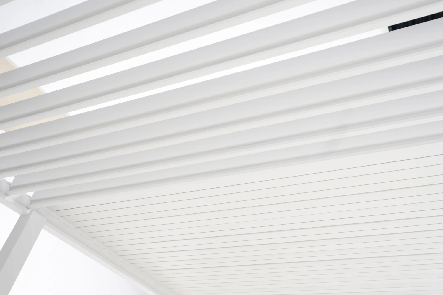 Voordelen -Aluminium frame van hoogwaardige kwaliteit -Kantelbaar lamellen dak tot 90 graden-Eenvoudige handmatige bediening -Geheel waterafstotend (bij lamellen dicht) -Innovatief waterafvoersysteem