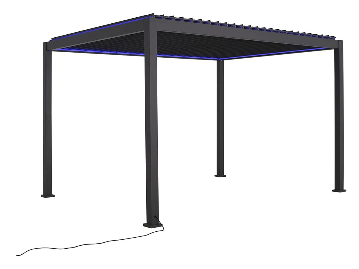 Door het elektrische lamellen dak, heb je altijd de keuze of je in de zon of in de schaduw wilt zitten. De lamellen kunnen 90 graden kantelen waardoor je zeer flexibel bent in het doorlaten van zonlicht. Wanneer het lamellen dak dicht zit, dan is de overkapping 100% waterdicht doordat het water via het geïntegreerde waterafvoersysteem wordt afgevoerd. De overkapping sluit je gemakkelijk aan op een 220V stopcontact. De LED verlichting zorgt voor een aangename en warme sfeer tijdens de avonduren. Het elektrisch lamellen dak en de LED verlichting bedien je gemakkelijk met de afstandsbediening. Let op, de stroomkabel loopt via 1 paal van de overkapping naar buiten.
