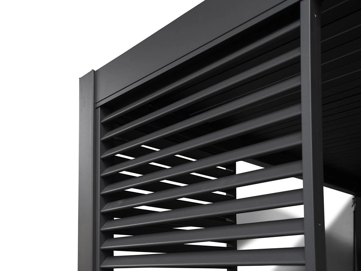 Belangrijke informatie-Het Mirador Louvre shutter paneel wordt per stuk geleverd-3shutter panelen bedekt een 4 meter kant volledig-De lamellen kunnen niet kantelen en staan vast-Niet geschikt voor de Mirador Basic modellen-Dit Mirador Louvre Shutterpaneel is alleen geschikt voor Mirador overkappingen