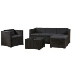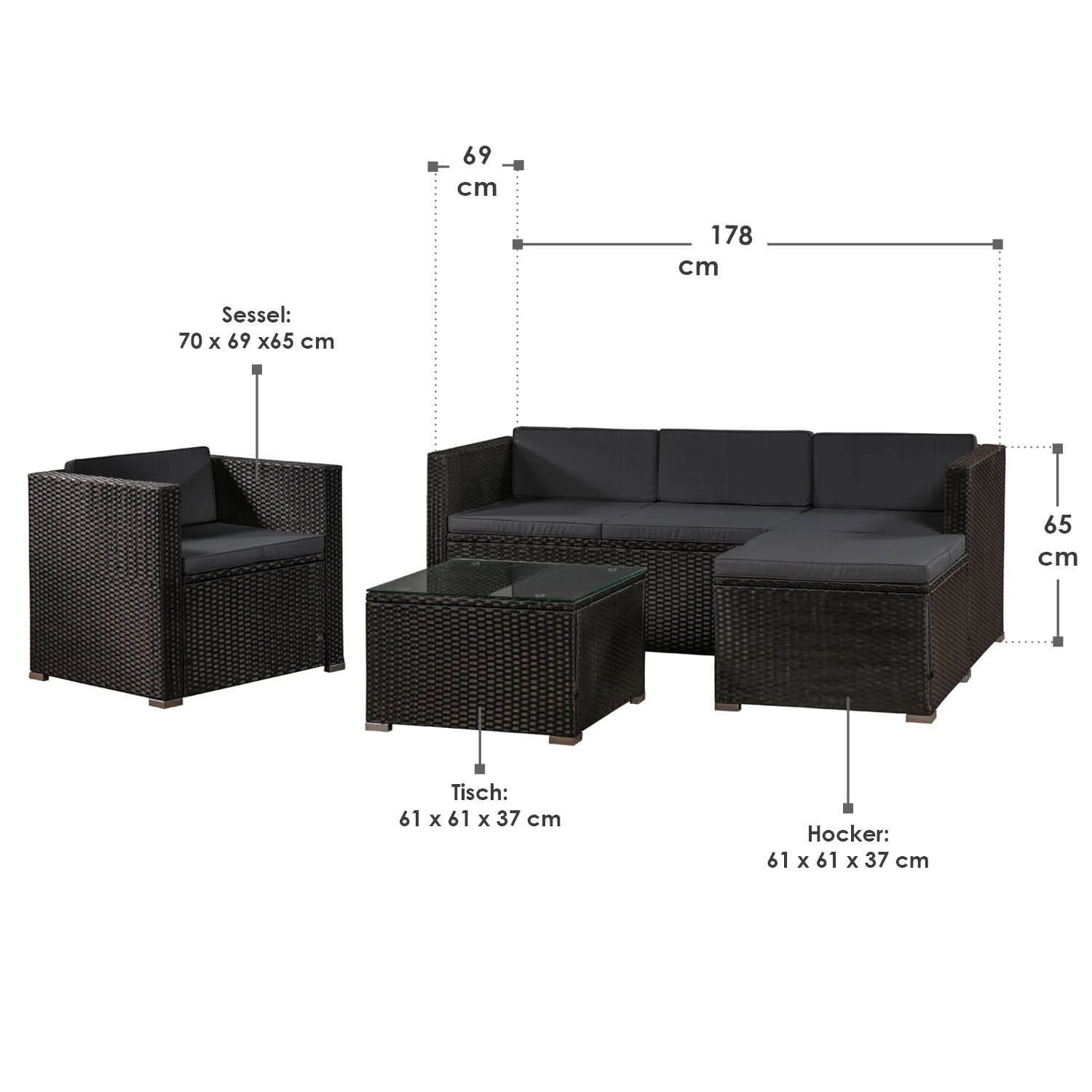 Ben je op zoek naar een comfortabele en grote loungeset voor in je tuin, terras of balkon? Met de zitset “Punta Cana L” verander je je buitenruimte in een stijlvolle plek om te ontspannen en je goed te voelen. Gezellige avonden met familie, vrienden of buren worden een belevenis in de buitenlucht. De unieke rotan look in zwart met grijze vulling geeft je nieuwe loungemeubel een moderne charme. Creëer je eigen oase van welzijn om te ontspannen en samen te zitten.