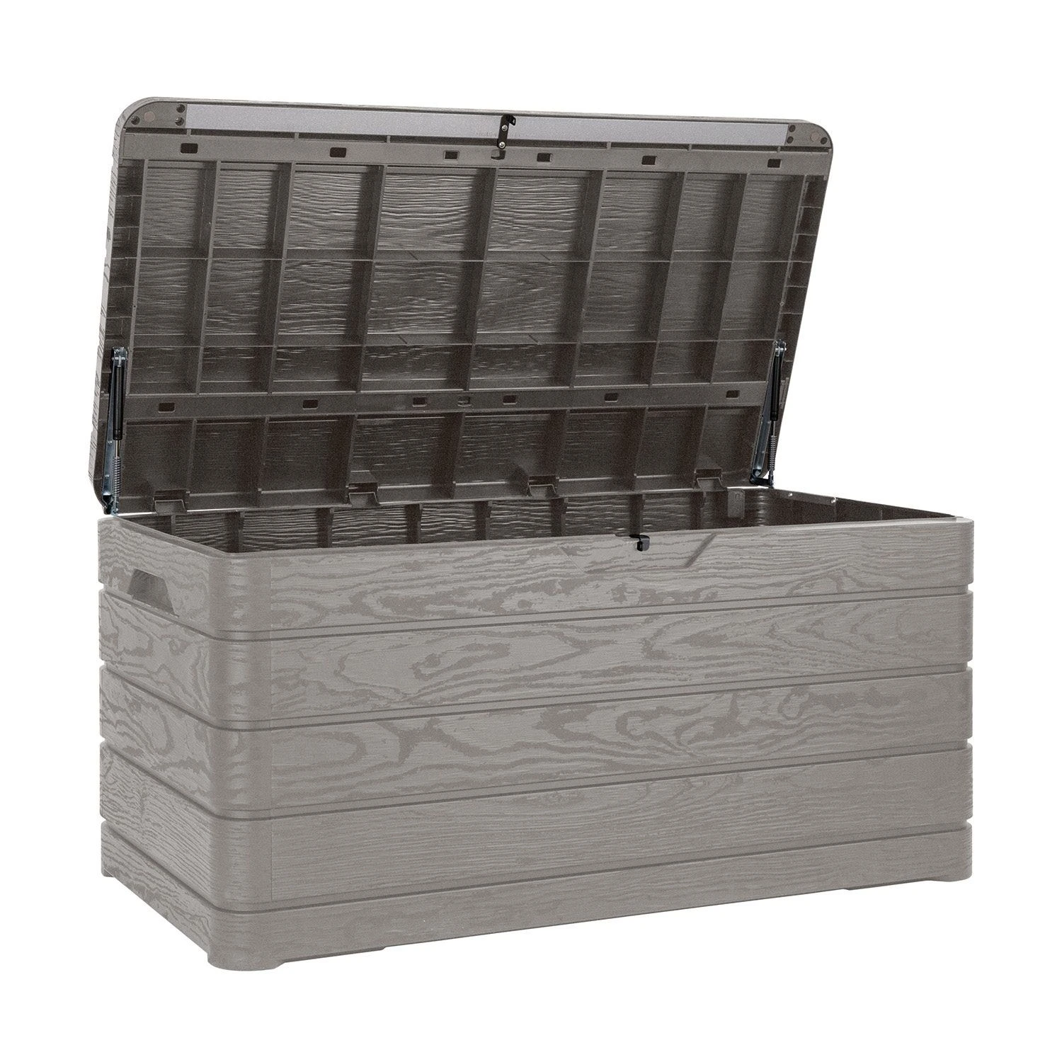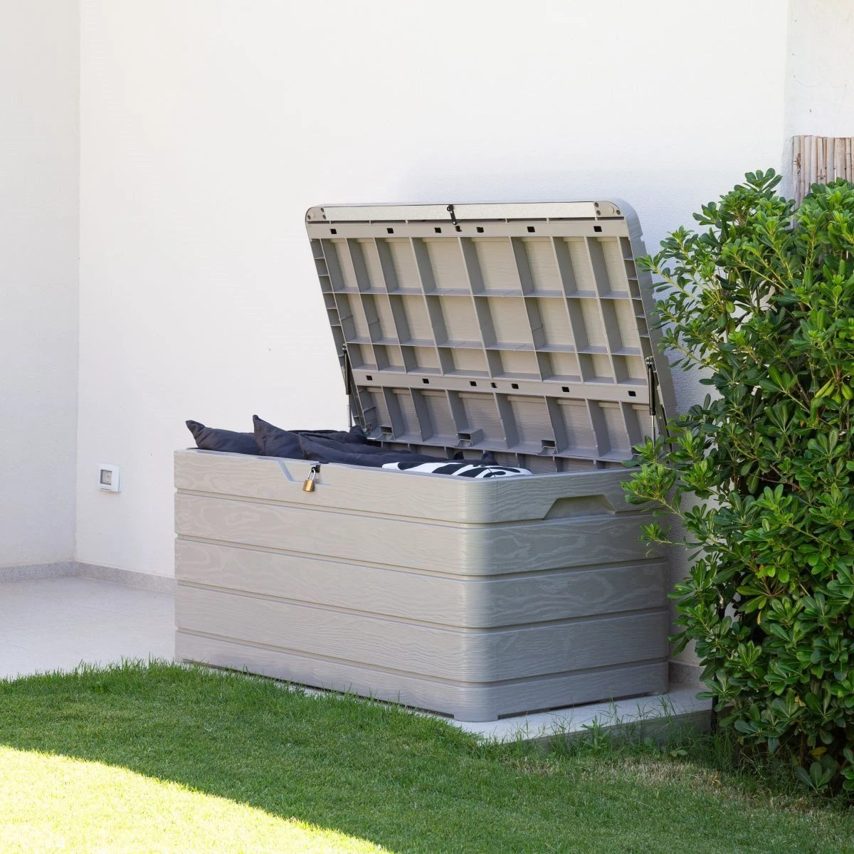 Toomax Dolomiti opbergbox 500 liter – grijsDe Toomax Dolomiti opbergbox is de perfecte oplossing voor het opbergen van kussens, tuinaccessoires en andere spullen in je tuin of op je terras. Deze stijlvolle en functionele opbergbox biedt een combinatie van gebruiksgemak, duurzaamheid en een aantrekkelijk ontwerp. Door het grote volume van 500 liter is er genoeg plek voor het opbergen van bijvoorbeeld tuinkussens of verschillende soorten tuingereedschap. De opbergbox beschikt over een hangslotvoorziening zodat je de box volledig kan afsluiten. (hangslot niet meegeleverd).Makkelijk in gebruikDe Dolomiti opbergbox is gemakkelijk in elkaar te zetten door middel van klikverbindingen. Hiervoor is geen gereedschap benodigd. Wil je de opbergbox verplaatsen? Dit kan gemakkelijk door middel van de handgrepen. Let op, deze opbergbox is niet geschikt om op te zitten.KenmerkenVolume van 500LKlapdeksel met hydraulische verenAfmeting 129 (breedte) x 70 (diepte) x 64 (hoogte) cmAfmeting binnenmaat 128,5 (breedte) x 67,5 (diepte) x 62 (hoogte) cmGeschikt voor binnen en buitenHandgrepen voor makkelijke verplaatsingWeer en vorstbestendigMakkelijk in elkaar te zetten zonder gereedschap