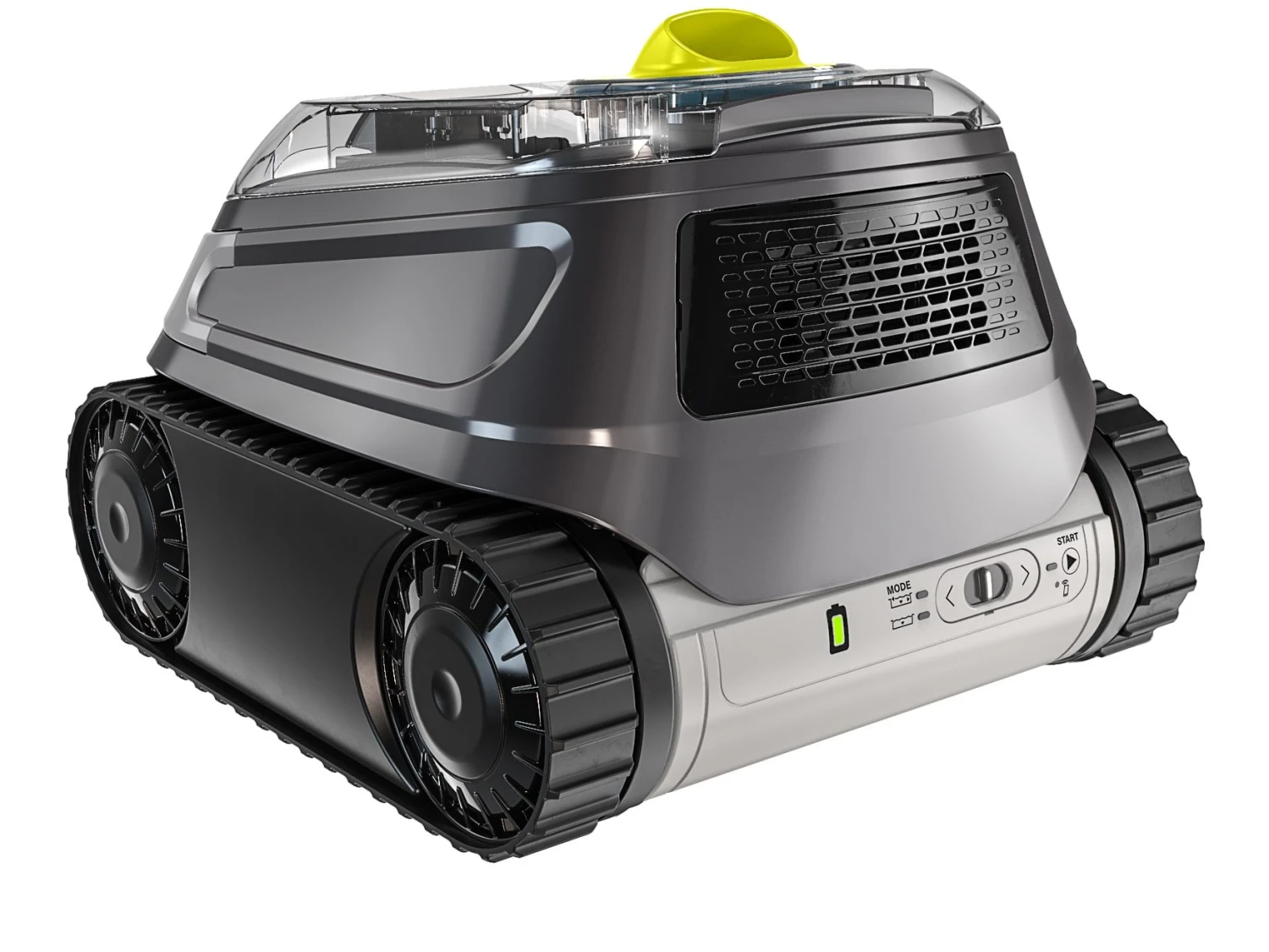 Het slimme bedieningsscherm op de zwembadrobot maakt het mogelijk om eenvoudig de laadstatus van de batterij te bekijken, de reinigingsmodus te selecteren en een cyclus te starten. De robot is uitgerust met een transparant venster voor snelle vuilcontrole en een van bovenaf toegankelijk filter voor eenvoudige reiniging.